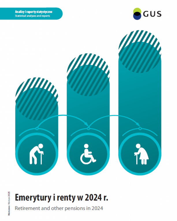 Basic information Basic information Basic information on retirement pay and other pension benefits. Presentation of changes in the number of retirees and pensioners, the amount of gross benefits, the average amount of gross benefits by type (retirements, disability pensions, survivors' pensions), the dynamics of the observed changes and the relation to average monthly gross wages - from non-agricultural social security system (integration of SII data , MND, MIA and MJ), as well as from social insurance system for farmers (ASIF data). Comparison of the average retirement pension and disposable income of retirees' households with the social minimum and subsistence minimum. Characteristics of the retirees' and pensioners' households. 30/12/2025 It is: PLN 240.2 billion was allocated for disability pensions in 2024 Should be: PLN 24.0 billion was allocated for disability pensions in 2024 |